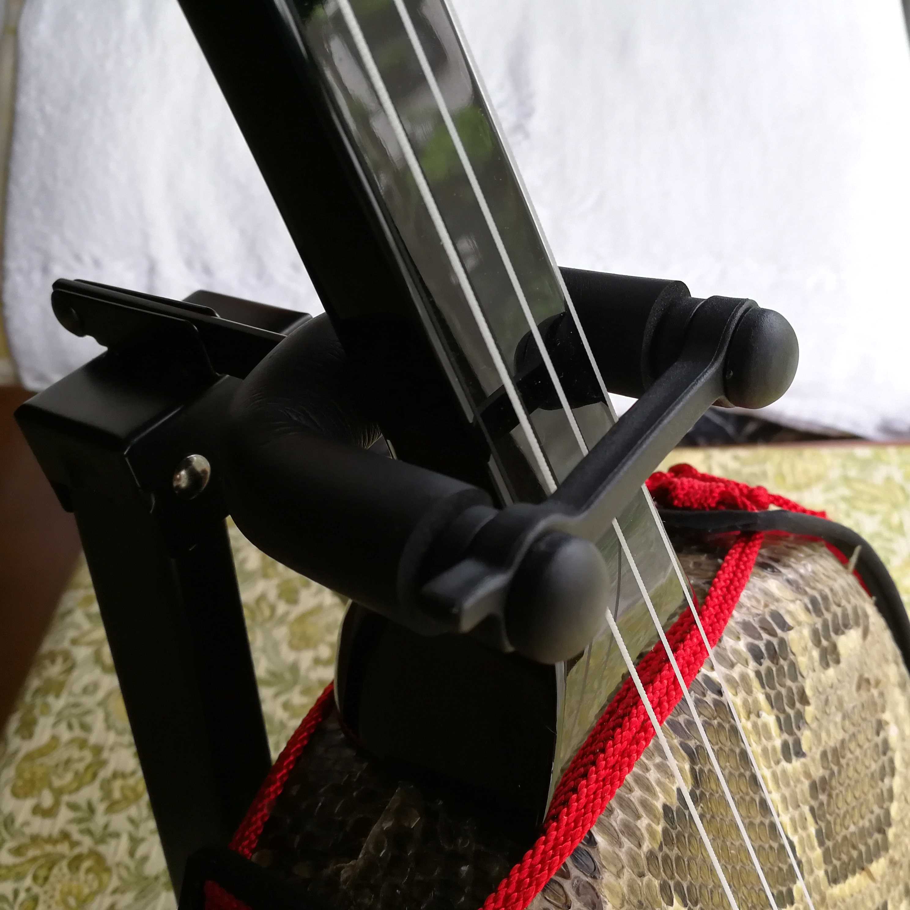 軽量折りたたみ式で持運びの簡単な三線立てです。 転倒防止用のガードも付いています。 三線はケースに入れっぱなしではなく三線立てかハンガーに吊るして保管しましょう。そして弾いてあげるのが長持ちさせる一番の秘訣です。